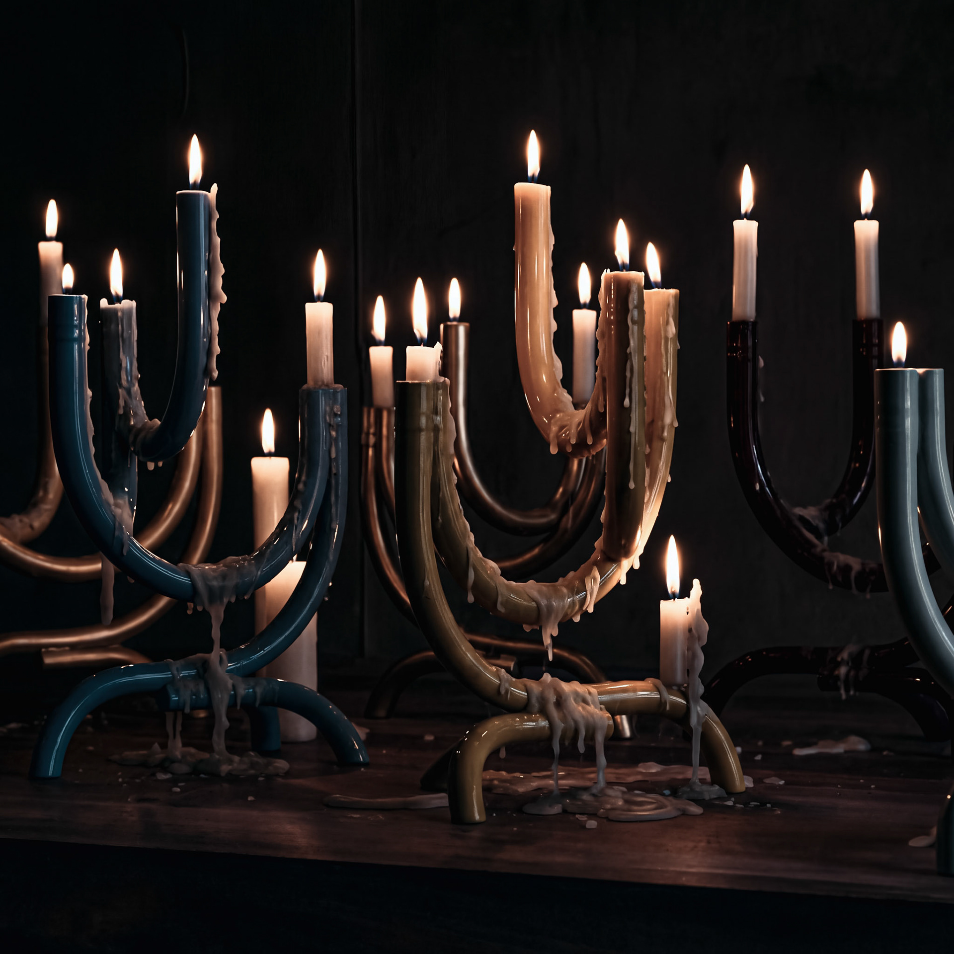 La colección BRO es una serie de candelabros de acero electropintado que desafía la rigidez del mobiliario convencional mediante un sistema de empalmes verticales articulados que permiten una interacción lúdica y constante con el usuario. El diseño se centra en la capacidad de ajustar manualmente la proximidad entre las velas, transformando la silueta tubular de colores vibrantes en una escultura dinámica que modula tanto la densidad de la luz como la composición visual del espacio. Al combinar una estética industrial minimalista con un mecanismo de rotación preciso, BRO trasciende su función de soporte para convertirse en un ejercicio de diseño sobre la cercanía, el ritmo y la geometría variable en el entorno doméstico.