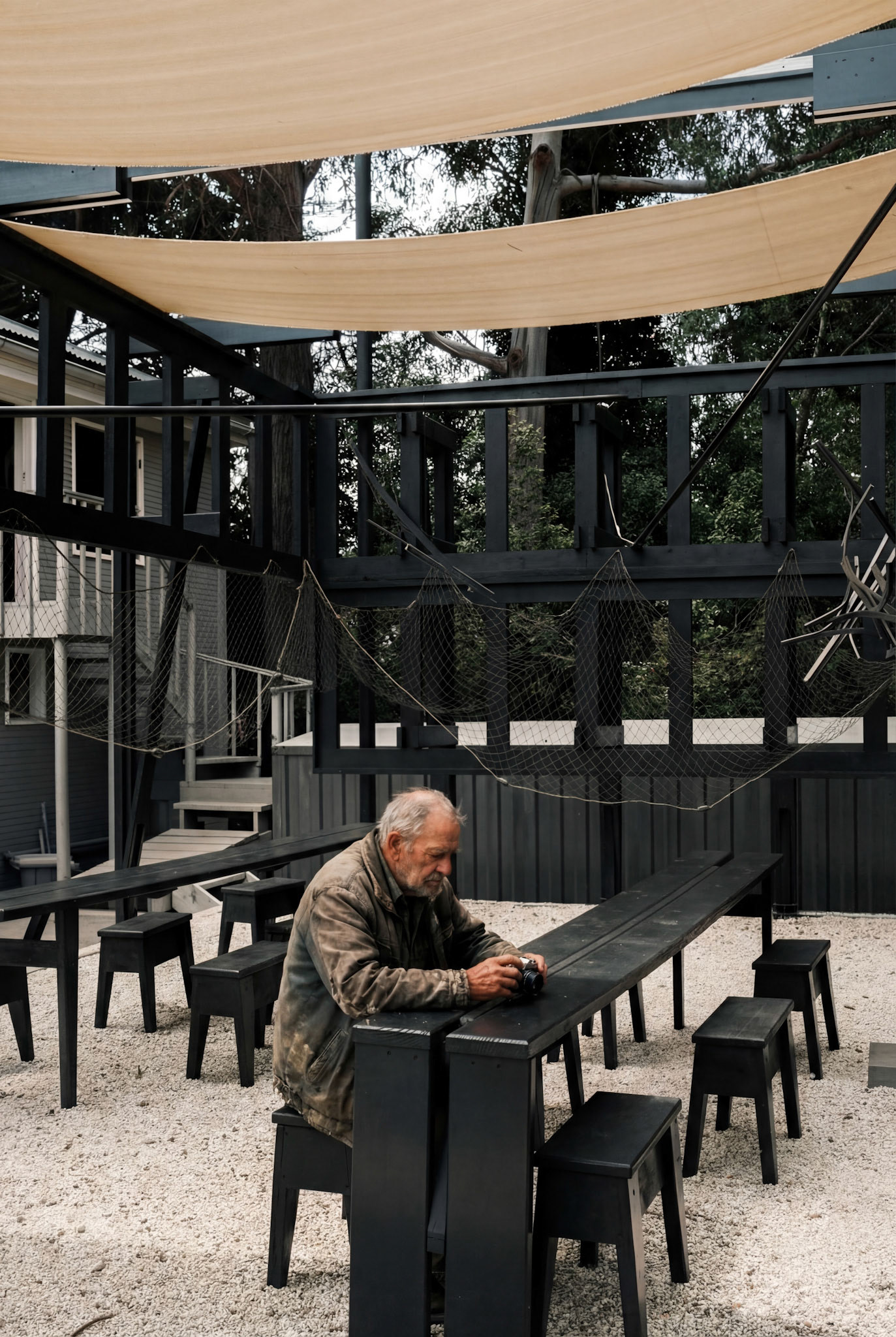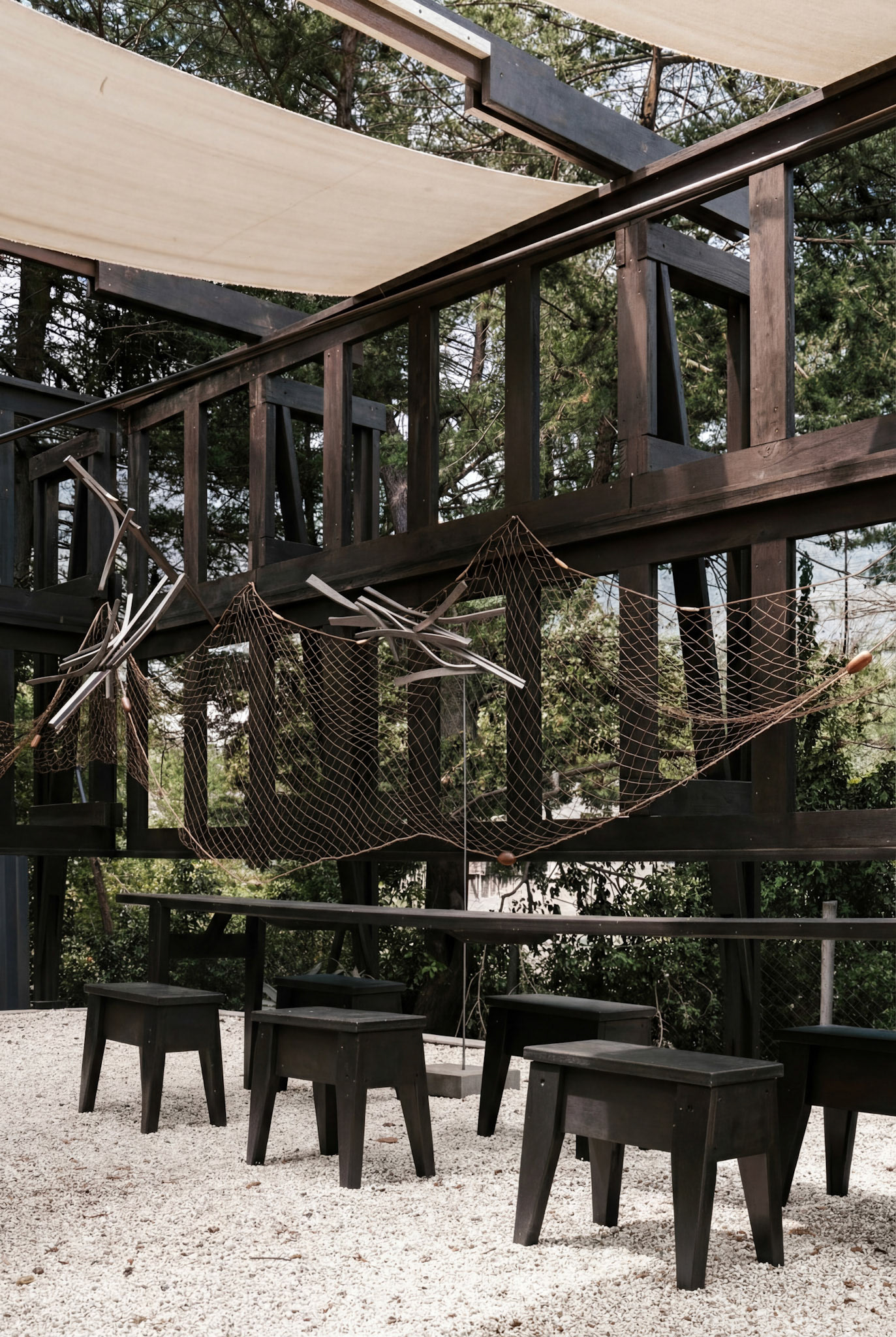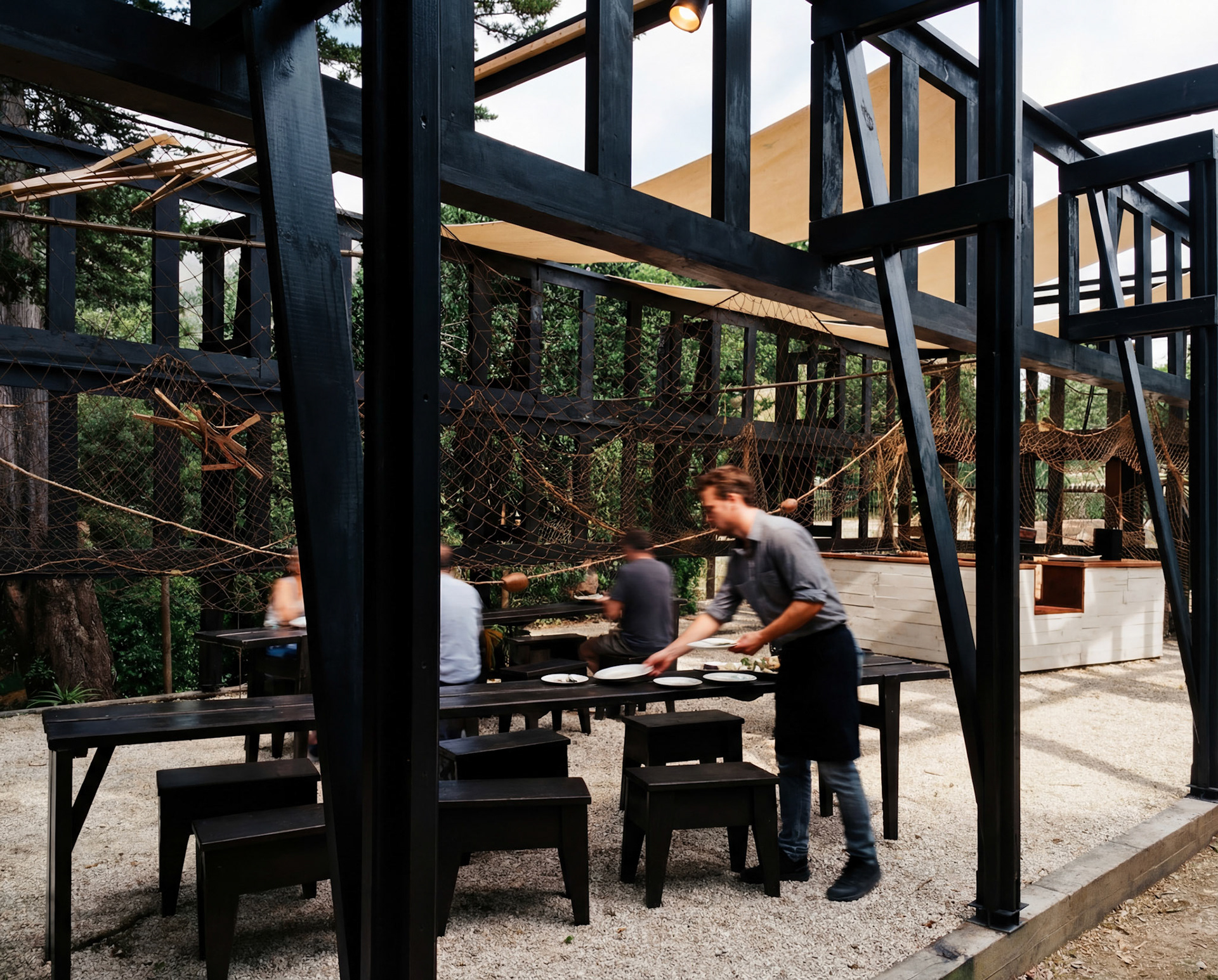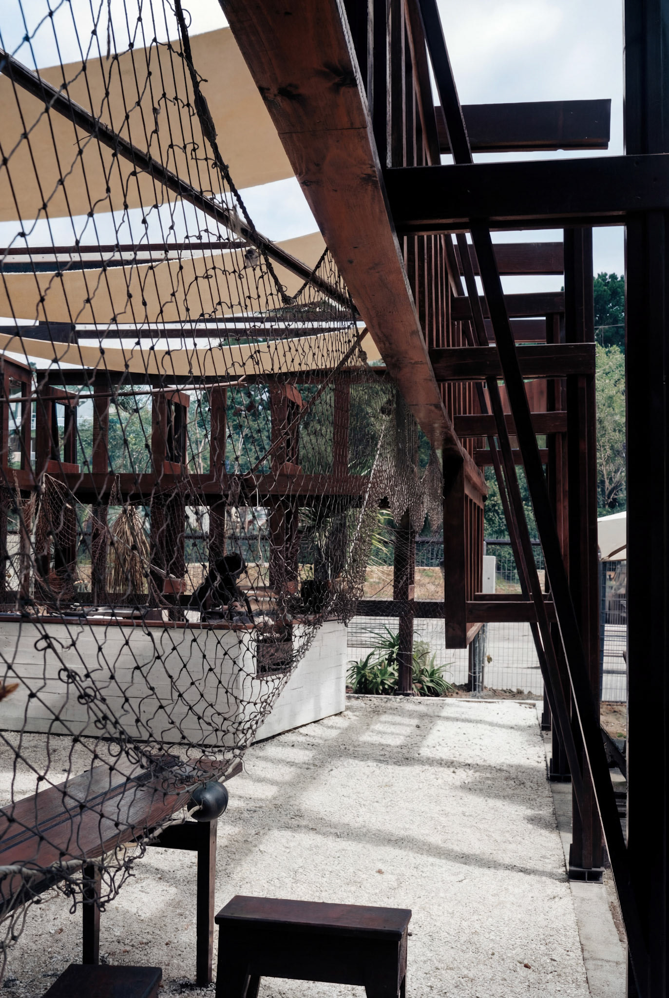 Recibimos este sistema, que es recibir también la lógica estructural del proyecto Umbráculo de Solor, más no su contexto original; ese campo queda abierto y, por tanto, posible de ser activado por el litoral. El reverso de esta estructura corresponde a la dimensión en común entre ambos territorios: la necesidad de un orden que permita la libertad de uso. Exponer el chasis es hacer presente el armazón que da continuidad a las diversas actividades para que la intervención conforme un corpus, es decir, la estructura sostenida de una arquitectura abierta.