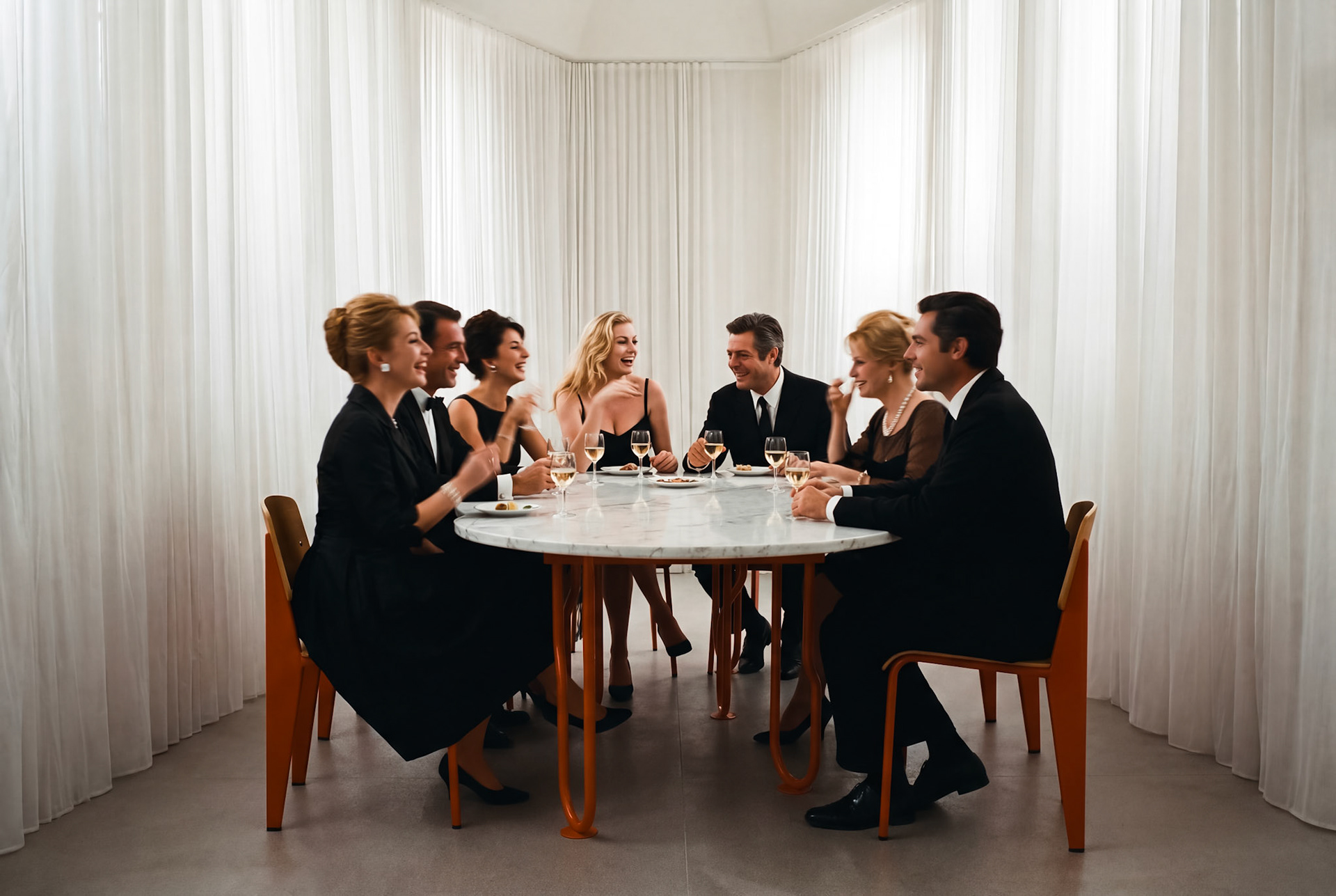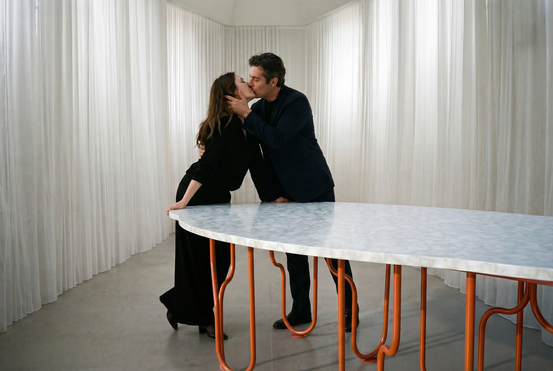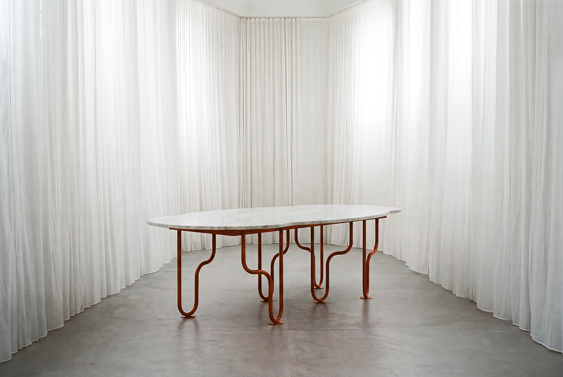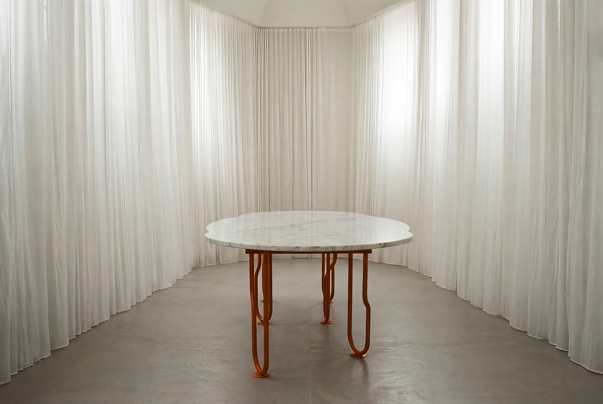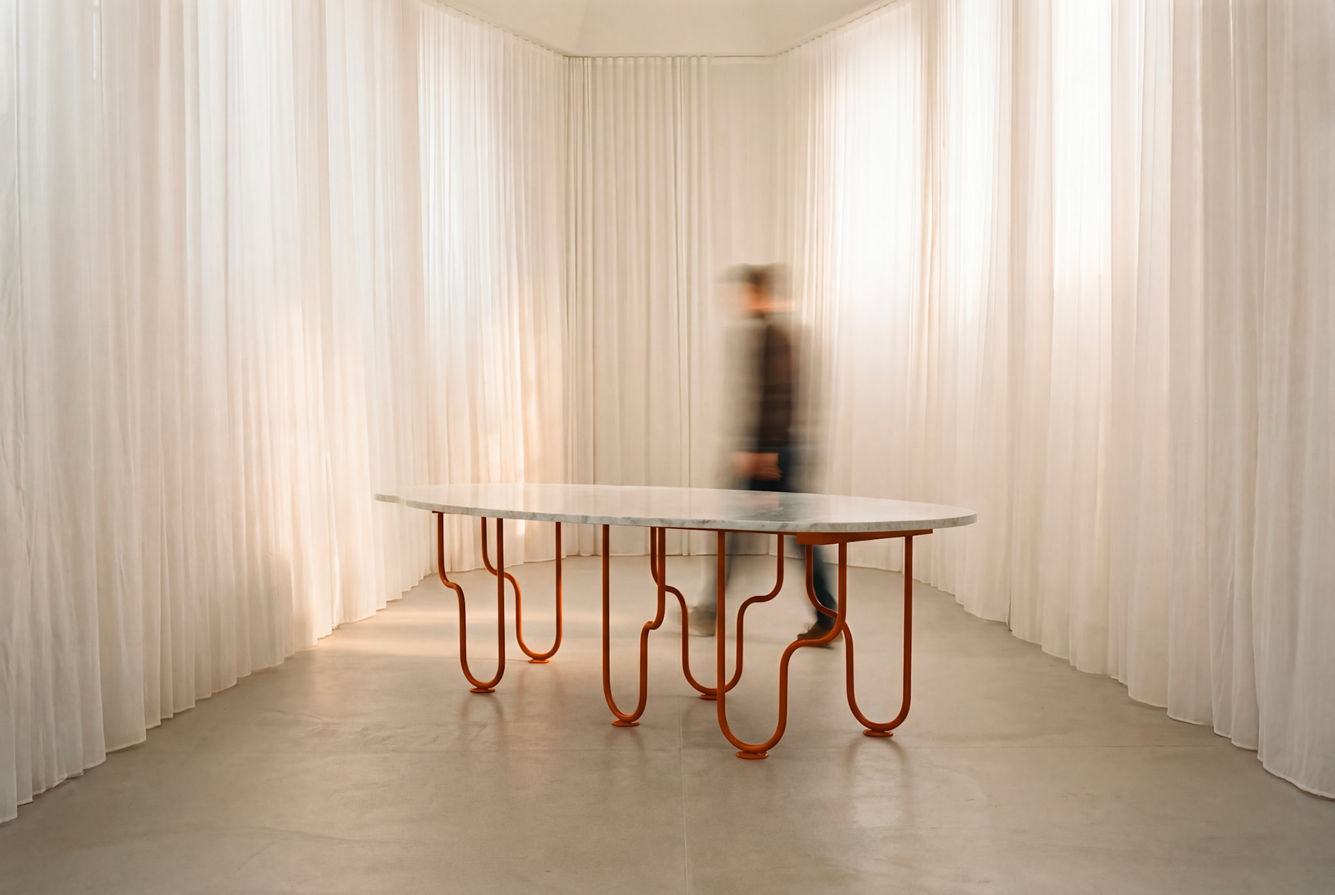 La mesa Dolce Vita es una detención ante el objeto cotidiano. Su ingenio reside en la geometría de sus apoyos: barras que abandonan la trayectoria coplanar para voluminizar cada elemento, otorgando al soporte una profundidad tridimensional que dialoga con el vacío. Es un cuerpo que se descubre en el despliegue de su estructura, dejando entrever cómo el rigor del cálculo y la levedad del diseño se toman de la mano.