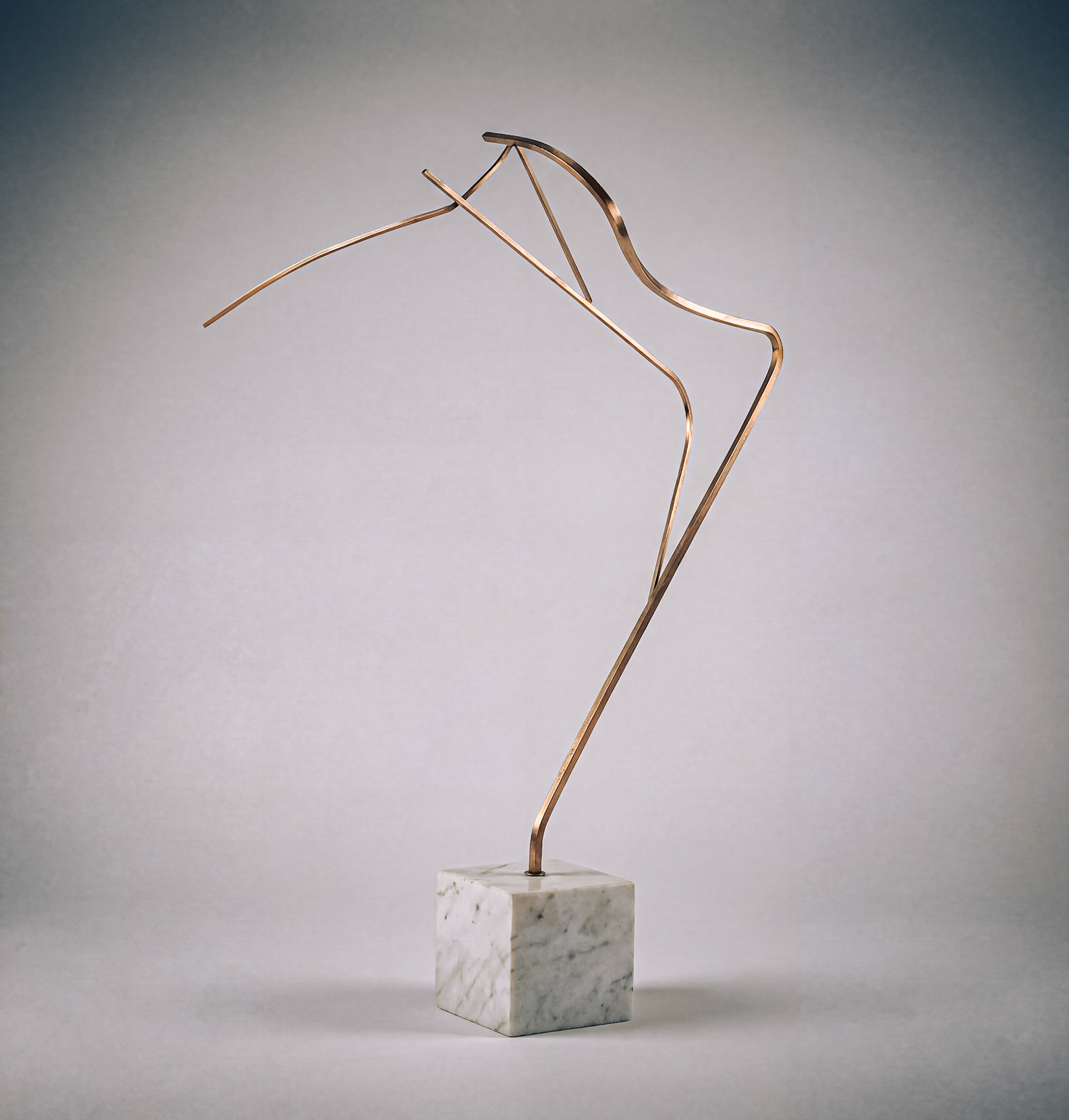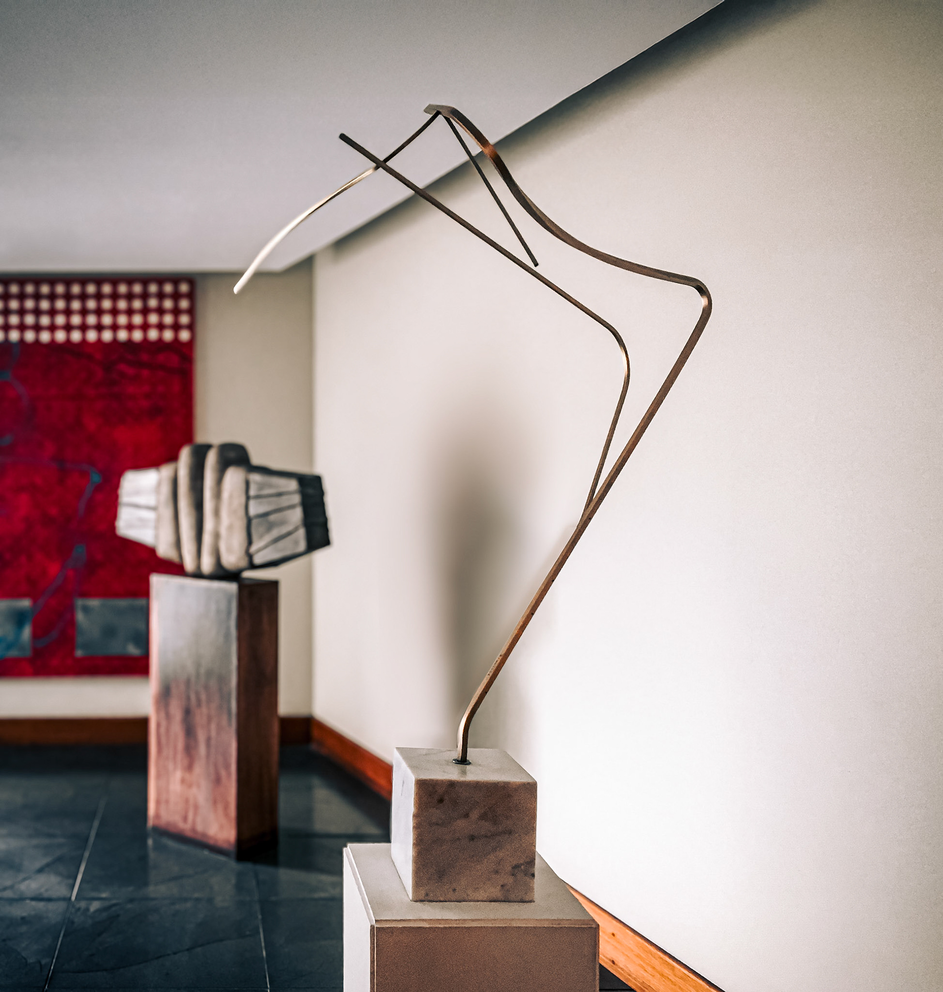 La escultura se comporta como un trazo en el aire, una trayectoria física que captura el movimiento justo antes de su inmovilidad. La tensión del metal, suspendido sobre la base pétrea, crea una narrativa de contrastes: la permanencia frente a lo efímero, lo denso frente a lo etéreo. Es una estructura que se atreve a la desnudez, donde cada curva y cada ángulo tienen la misión de sostener el vacío.